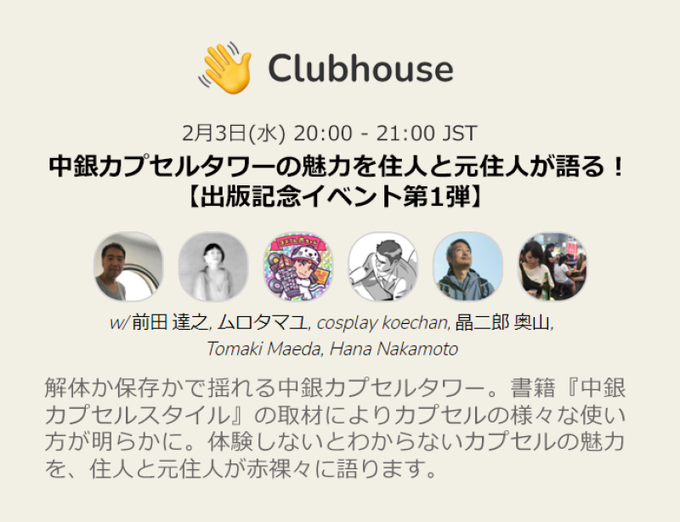 Clubhouseで中銀カプセルタワーの元住人として語ります を投稿しました。 #エキサイトブログ tomaki.exblog.jp/31975216/ pic.twitter.com/0vVG5MolKw